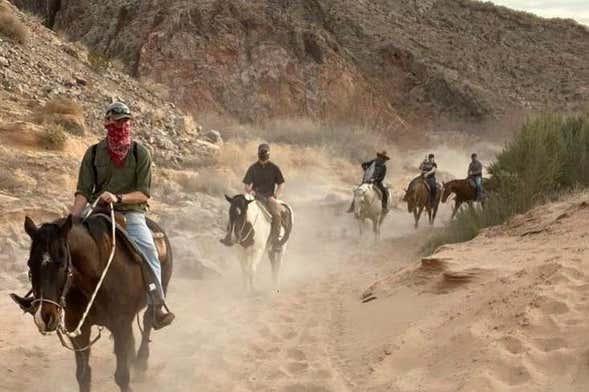 Con las energías cargadas, subiremos a las monturas e iniciaremos el paseo a caballo. Os invadirá una sensación de serenidad mientras cabalgamos rodeados de montañas por los áridos paisajes del desierto de Las Vegas. ¡Os sentiréis como auténticos cowboys del Lejano Oeste!
